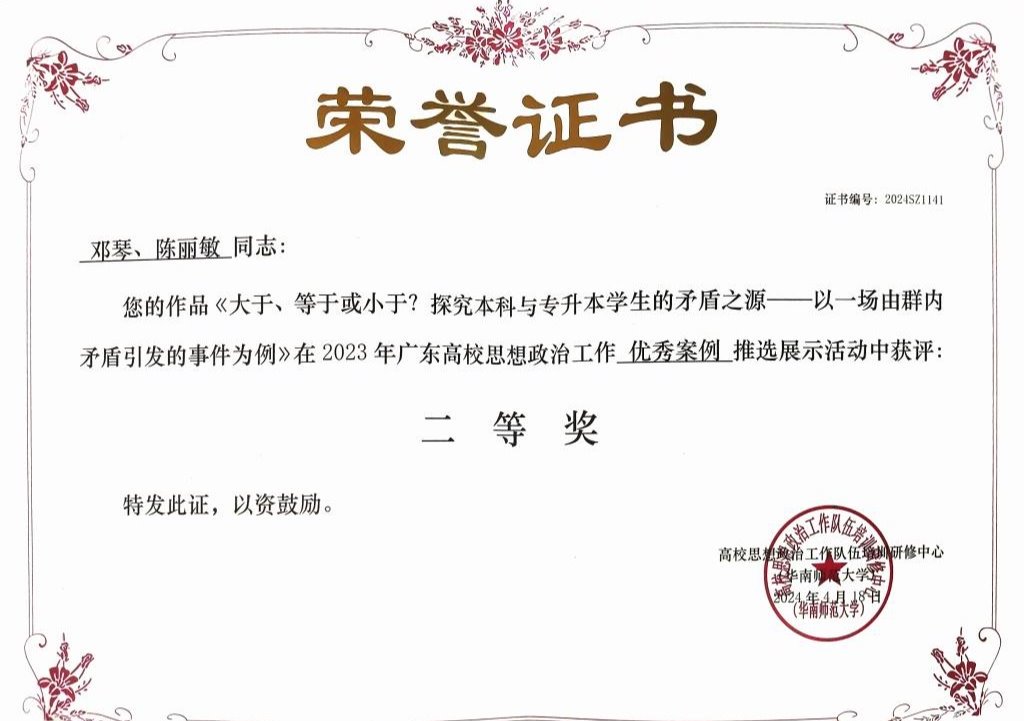 近日,2023年广东高校思想政治工作优秀论文、优秀案例、教学视频以及原创文化精品推选展示活动结果公布。我校推优报送的多项学工队伍优秀作品在本次比赛中获奖。其中,工作案例获奖10篇、工作论文获奖11篇、原创文化精品获奖1首、教学视频获奖2部。