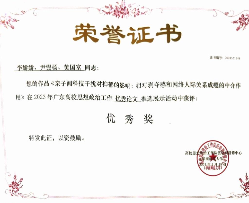 《亲子间科技干扰对抑郁的影响:相对剥夺感和网络人际关系成瘾的中介作用》 |