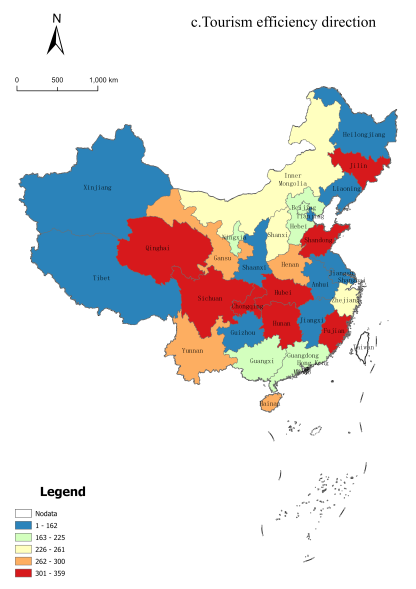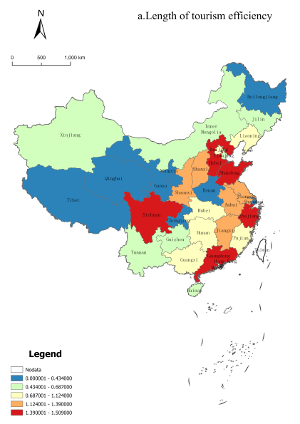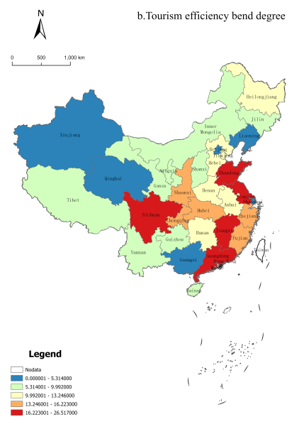 Spatio-temporal pattern evolution of China’s provincial tourism efficiency and development level based on DEA-MI model |