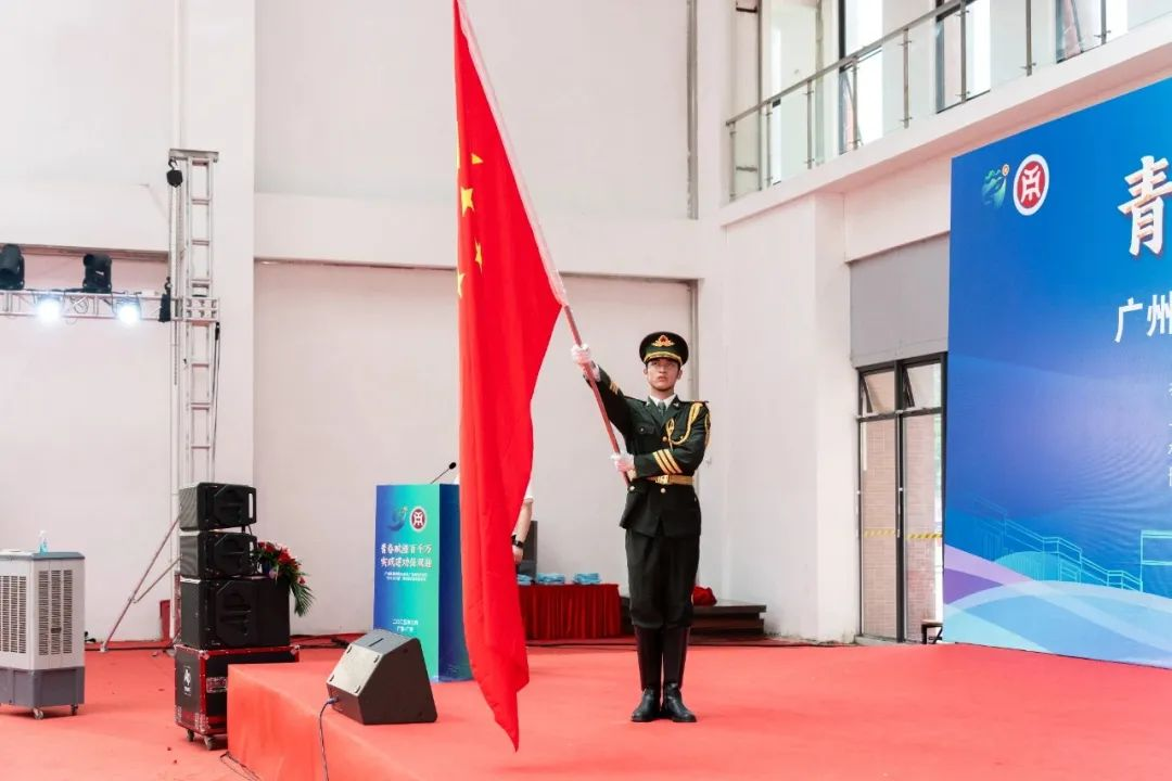 (团区委温振区副书记为2025年广州多多28广东青年大学生“百千万工程”突击队授旗)