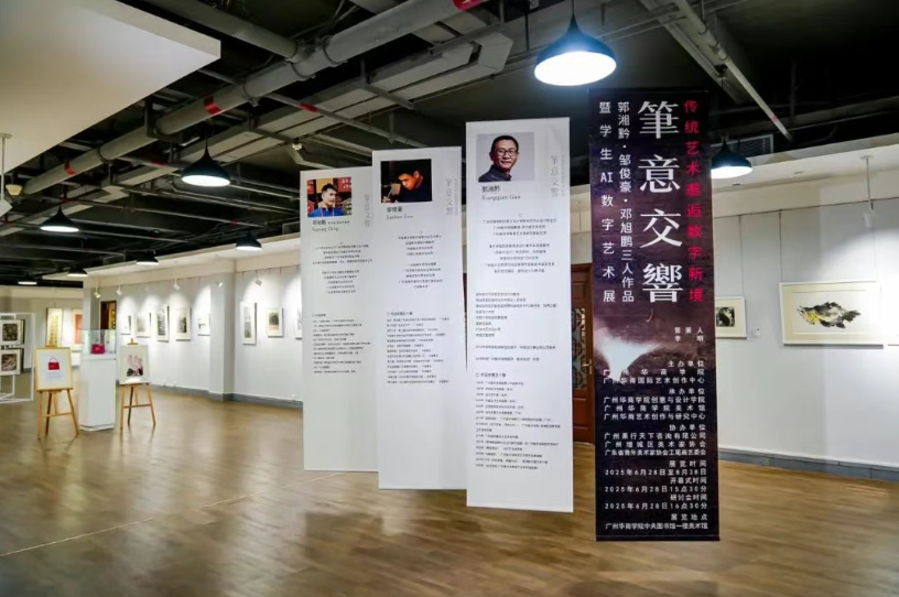 传统艺术+数字艺术=“破壁”之旅!我校举办“笔意交响–郭湘黔、邹俊豪、邓旭鹏三人作品暨学生AI数字艺术展”