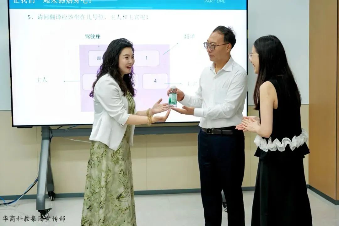 在交流互动环节中,陆露副部长以实际案例示范外事礼仪细节,针对参训教职工提出的“座次排序争议化解”“签约文本合规要点”等实操问题逐一解答,通过情景模拟生动展现“以右为尊”等原则的应用,现场互动热烈,理论与实践深度交融。