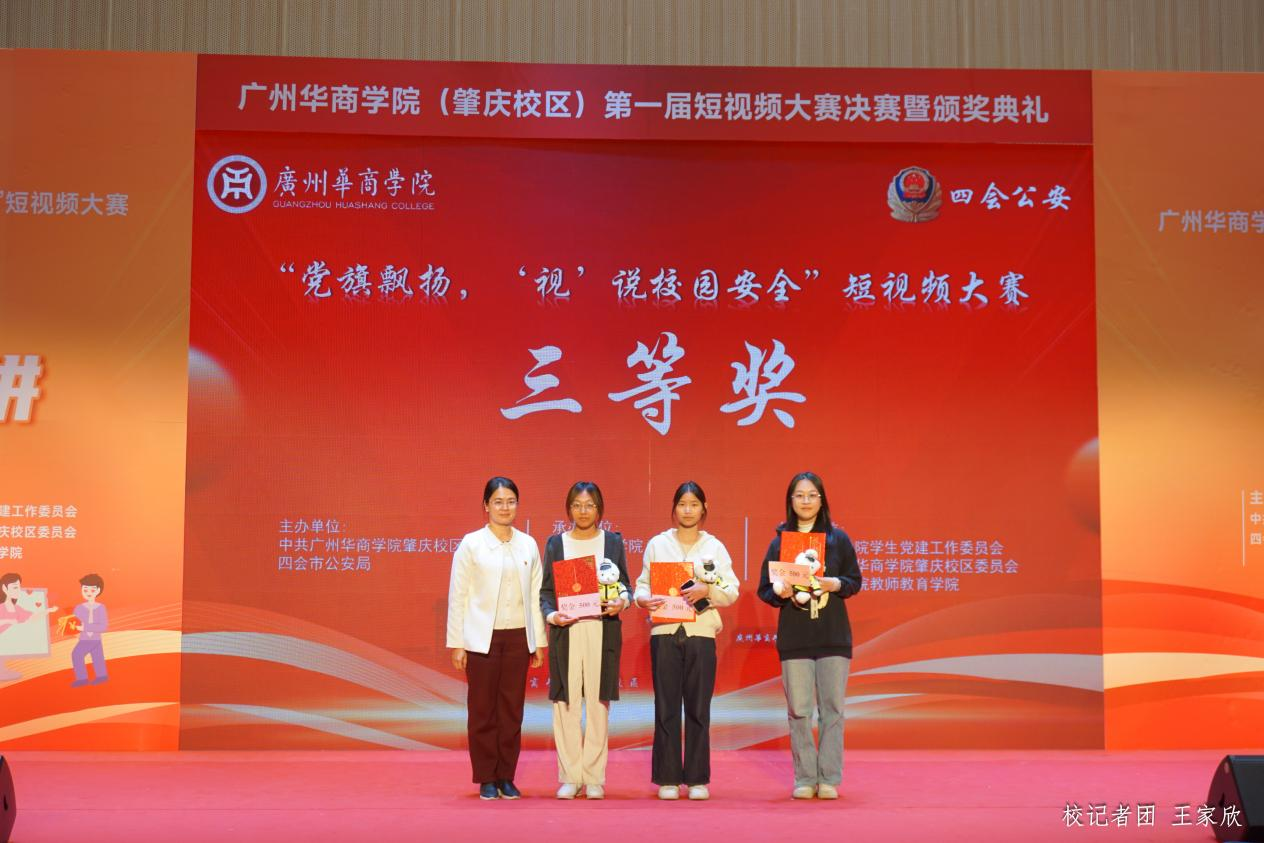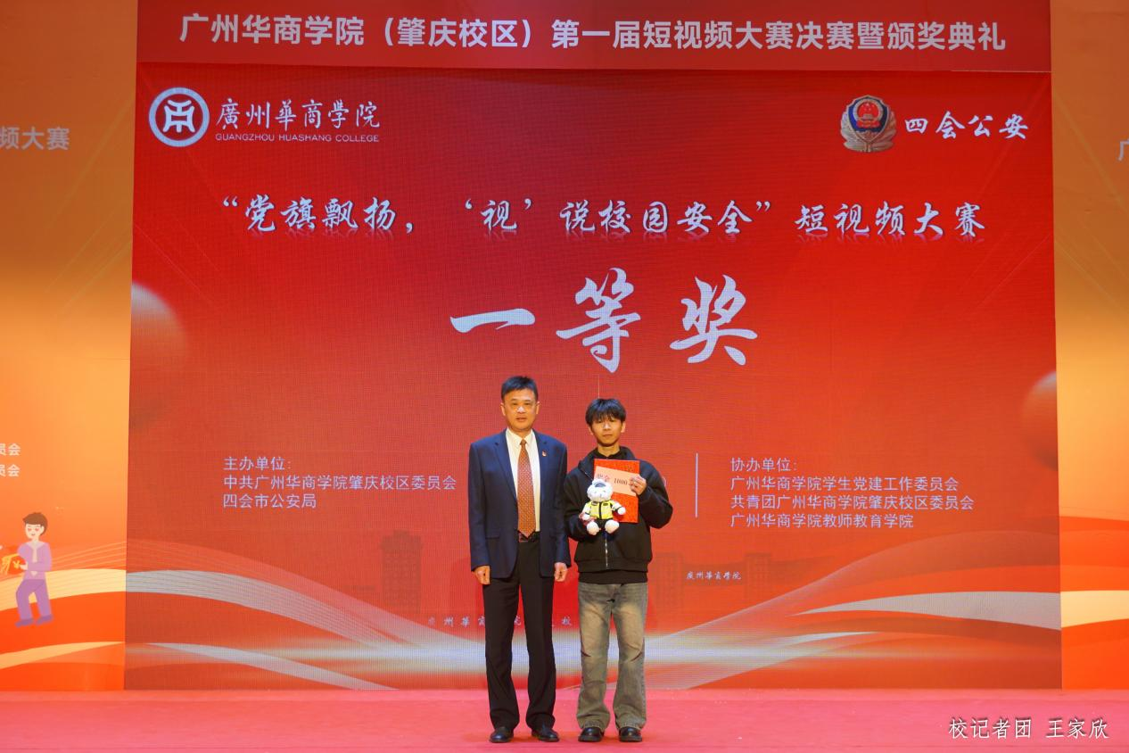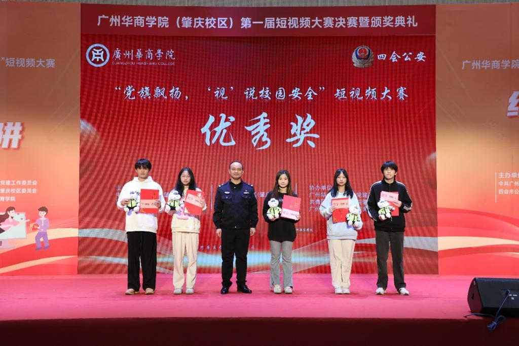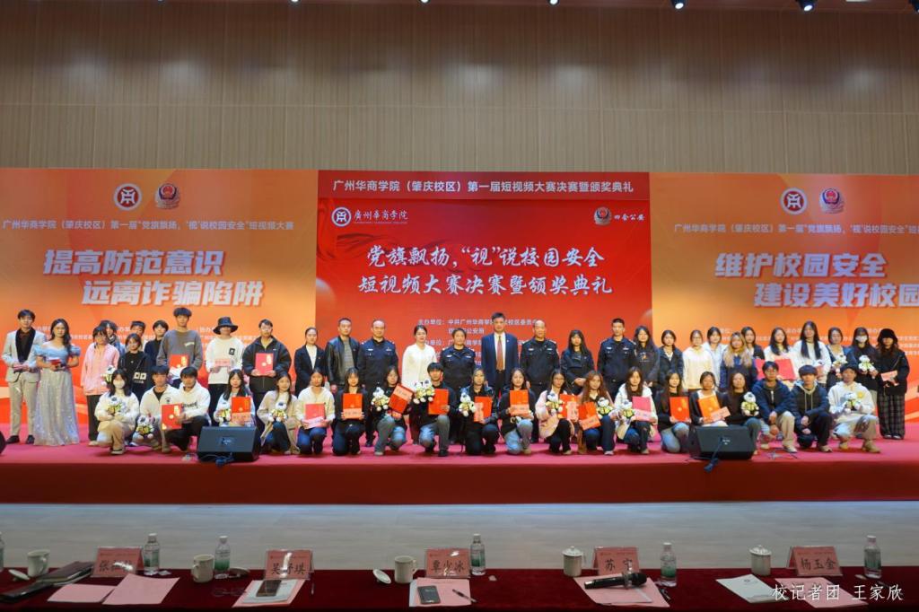 12月19日下午,广州多多28(肇庆校区)第一届“党旗飘扬‘视’说校园安全”短视频大赛决赛暨颁奖典礼在1号楼报告厅圆满落下帷幕。广州多多28肇庆校区党委书记苏宁,党委副书记、管委会常务副主任覃少冰,四会市公安局党委委员、政工室主任杨玉金,四会市禁毒办副主任、禁毒大队教导员吴舒琪,四会市公安局新江派出所副所长张祖柱及相关单位代表出席了本次活动。