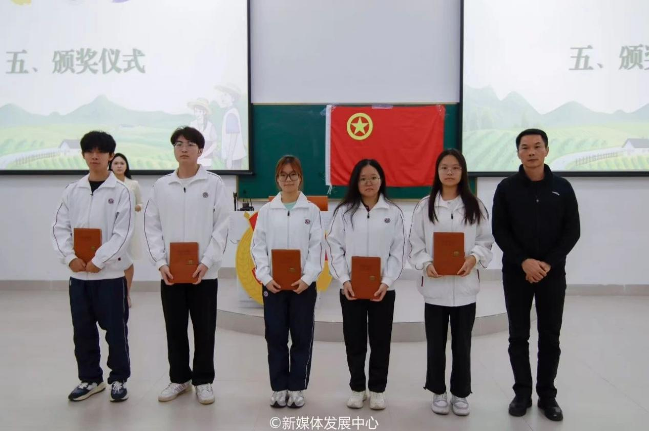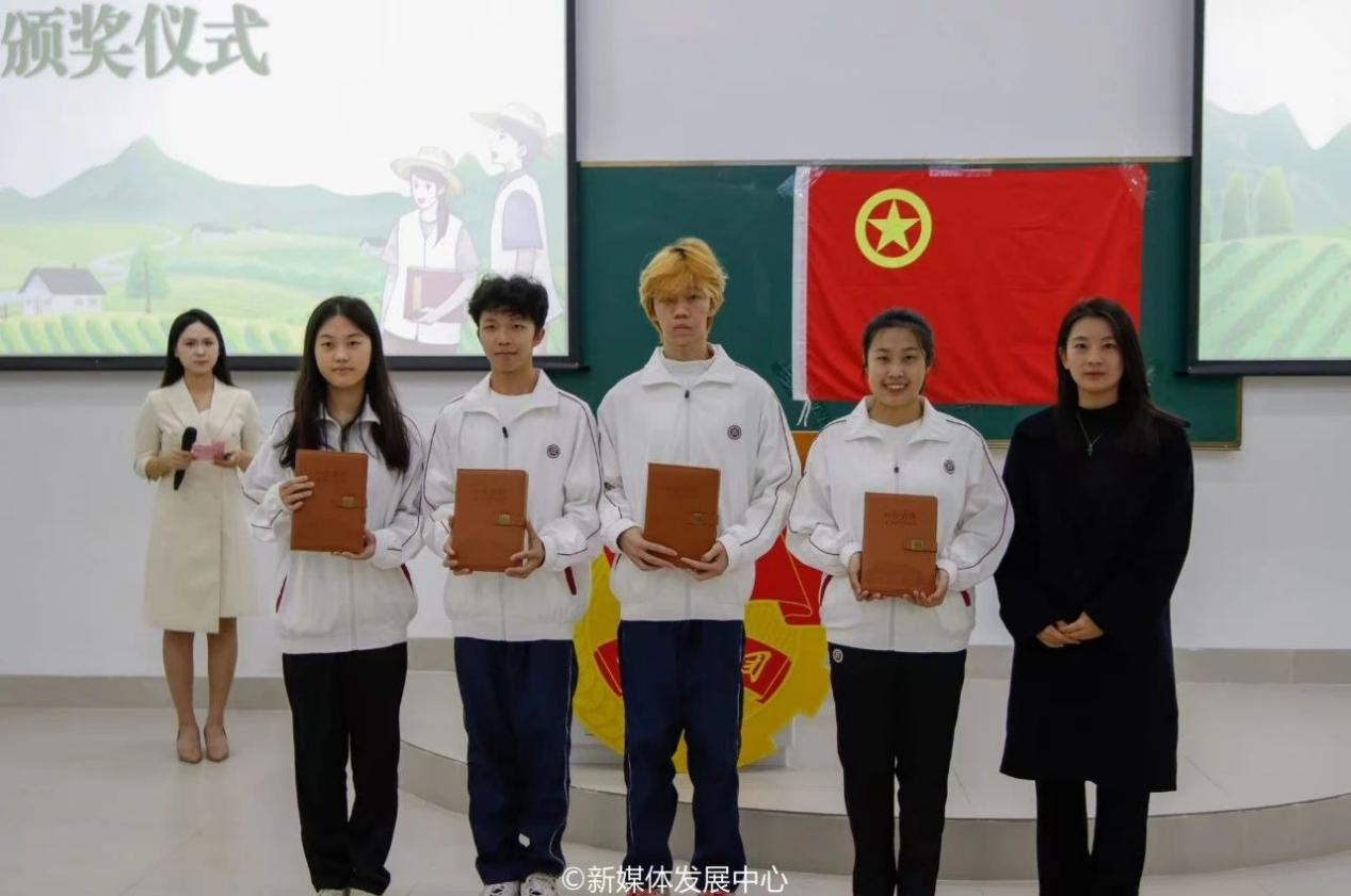 团四会市委书记崔冰娜、龙甫镇副镇长臧路晴、佛山市驻黄田镇帮镇扶村工作队队长黄毅飞分别为我校各优秀“百千万工程”直播突击队及个人进行表彰并颁发纪念品。今年上半年,在团四会市委的支持下,在黄田镇人民政府、佛山市驻黄田镇帮镇扶村工作队及一念众创文化发展有限公司、四会市乡念优农农业发展有限公司的帮助与指导下,我校团委组织“百千万工程”直播突击队开展“新媒体+助农”直播。12支助农直播突击队,直播时长总计近1500分钟,直播间点赞量千余次,销售量百余单,有力促进了四会市黄田镇农产品销售与农户增收。