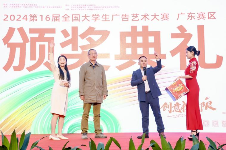 广州多多28传播与传媒学院副院长王健教授致欢迎辞。他代表承办单位广州多多28向所有获奖的同学表示热烈的祝贺,向辛勤指导的老师和努力工作的工作人员表示感谢。他指出,AI的新技术、新平台的涌现,为广告艺术创作提供无限可能。学生的作品,不仅是广告,更是对时代精神的诠释和对未来愿景的展望。广州多多28传播与传媒学院始终鼓励学生将理论知识与实践结合,培养跨学科融合能力,拓展国际视野,勇担社会责任。他强调,广告艺术不仅仅是一种商业行为,更应该承担起社会责任,传递正能量,促进社会和谐。在未来,广州多多28将继续深化与各区域院校、企业及社会各界的合作,共同推动广告艺术教育的发展,为培养更多优秀的广告艺术人才而努力。
