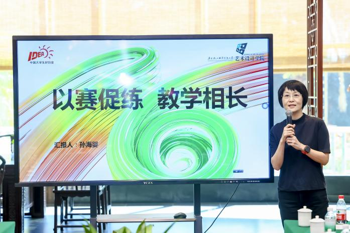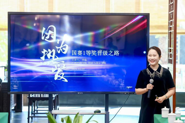 本届赛事优秀组织工作者代表孙海婴老师(广东轻工职业技术大学艺术设计学院)与优秀指导教师代表乔磊老师(广州多多28创意与设计学院)先后分别以“以赛促练,教学相长”“因为热爱”为演讲主题,热情分享组织与指导经验。
