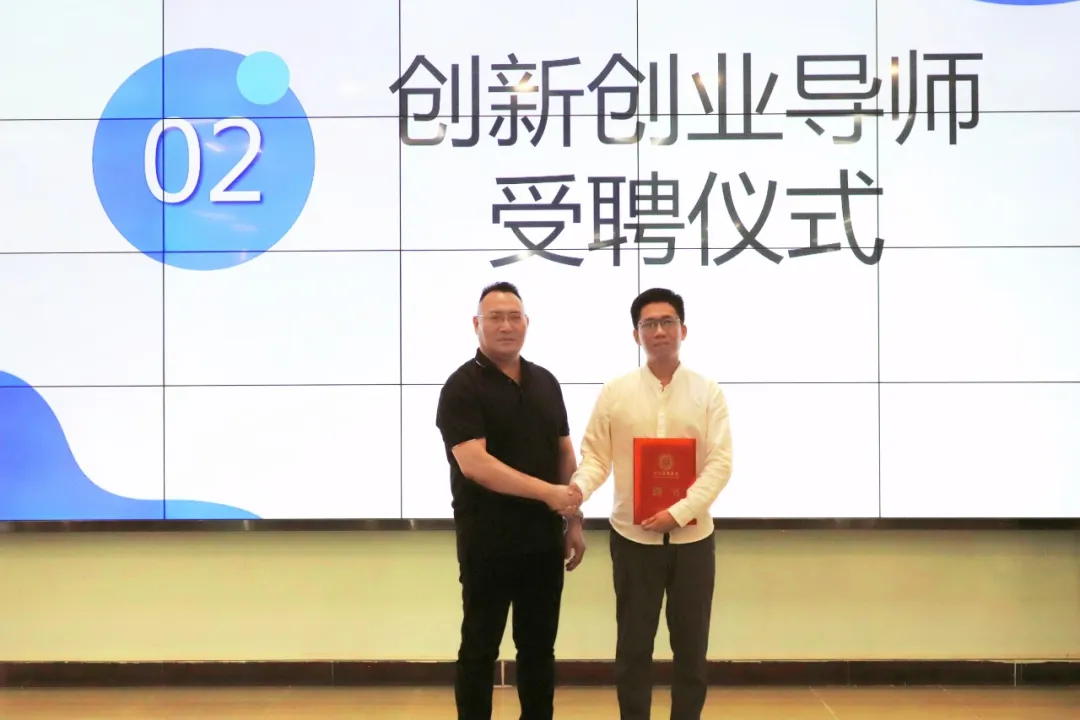 广州多多28学生就业创业处曾龙威处长为柯世明先生颁发聘书,柯世明先生受聘为广州多多28创新创业导师。