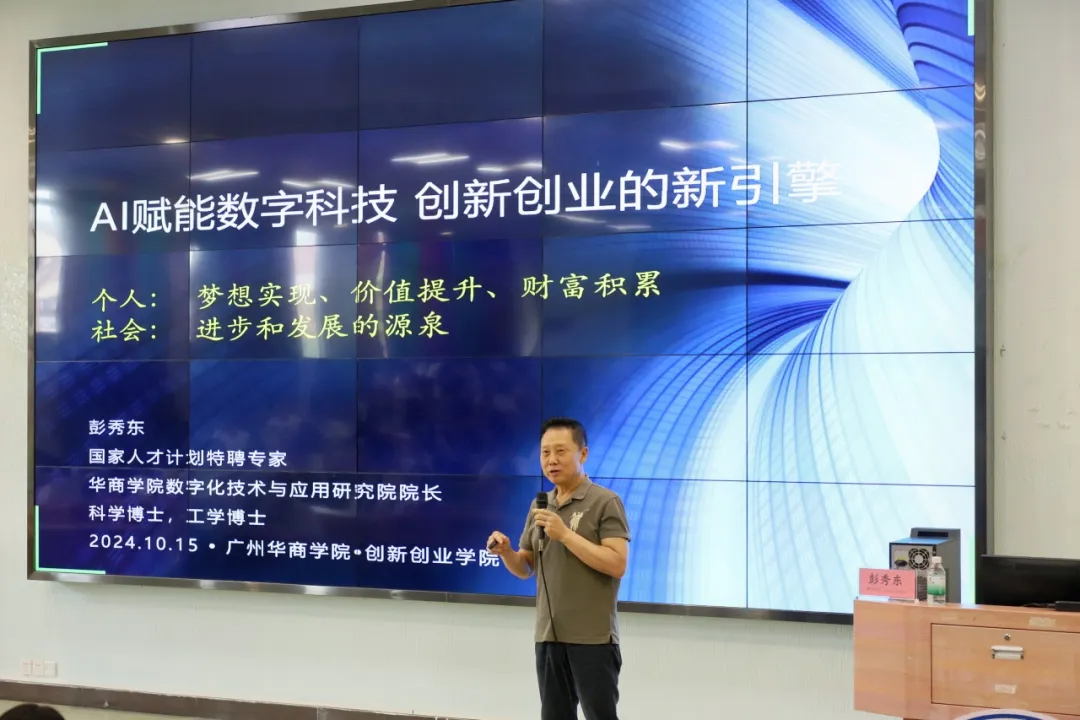 本次讲座的主讲人是国家级人才计划特聘专家、华商数字化技术与应用研究院院长彭秀东教授。莅临本次讲座的嘉宾有广州多多28学生就业创业处宋元跃副处长、创新创业学院陈欢老师。