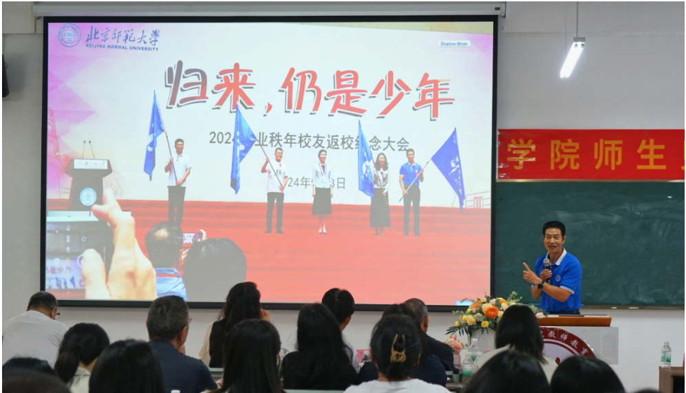张博副院长分享了自己参加北师大校友会返校日的难忘经历,并为新生们送上“学生、学习、学历”三个关键词。张副院长强调了学生角色的转变、学习观念的转换以及学历的真正含义,鼓励同学们不仅要成为知识的接收者,更要勇做知识的探索者和创造者。