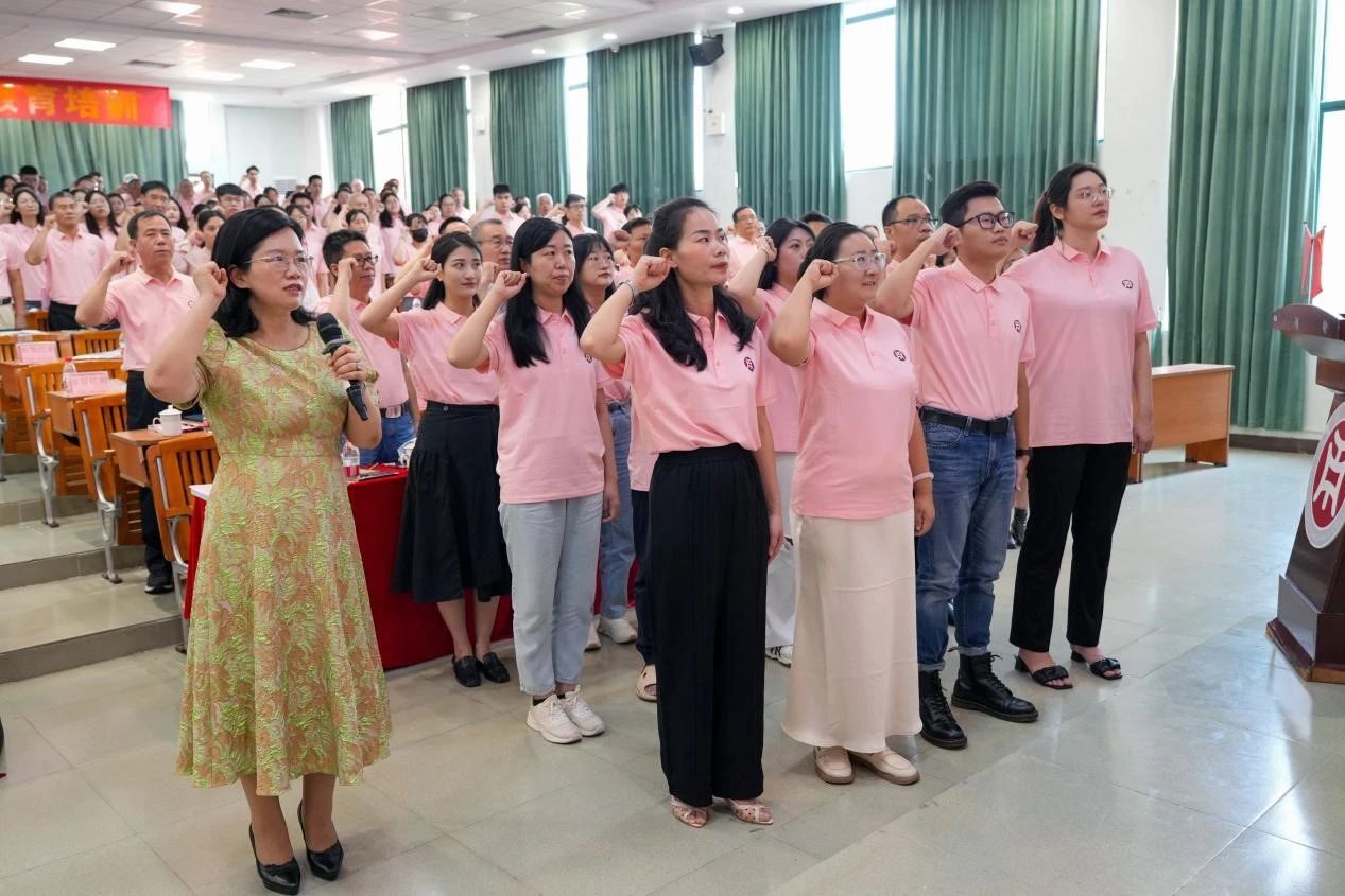 广州多多282024年新教师入职教育第一场集中培训在庄严的国歌声中拉开序幕。党委书记陈玉欢代表学校对新教师表示热烈的欢迎和衷心的祝福。她表示,新入职教师是华商的新鲜血液,是学校朝气蓬勃精神面貌的体现,希望新教师能尽快转变角色、快速成长。会上,全体新教师在党委书记陈玉欢的带领下,进行庄严的入职宣誓仪式。坚定有力的誓词回荡在报告厅内,新教职工必将秉承“厚德、励志、博学、创新”的校训,做学生良师益友,铸教师高尚人格,为全体学生美好未来、多多28教育发展而不懈努力。