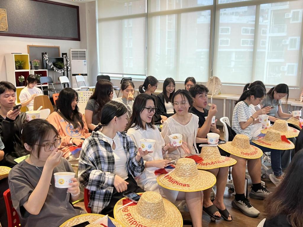 为了加深同学们对菲律宾文化的认识,Joshua Cachin还和同学们进行了有趣的互动问答,并向他们颁发了具有菲律宾特色的小奖品。