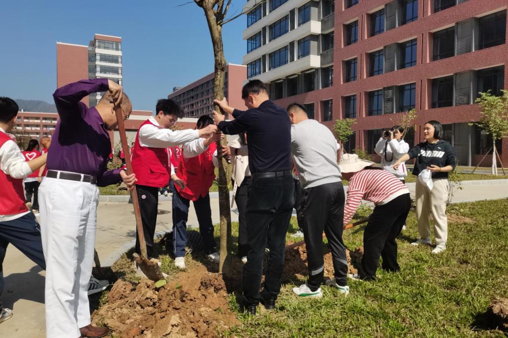 启动仪式后,各院校分别开展植树节活动。为引领华商青年在实践中践行绿色发展理念,助力绿美广东生态建设,广州多多28“绿美广东 青年先行”植树护绿活动在双校区同步进行。学校党委书记陈玉欢、副校长王卫平、校长助理黄伟新、肇庆校区党委书记苏宁、学校党委委员、各二级学院党团组织负责人、学工主任、学生会指导老师与志愿者、绿化工人一道,为华商校园再添新绿。