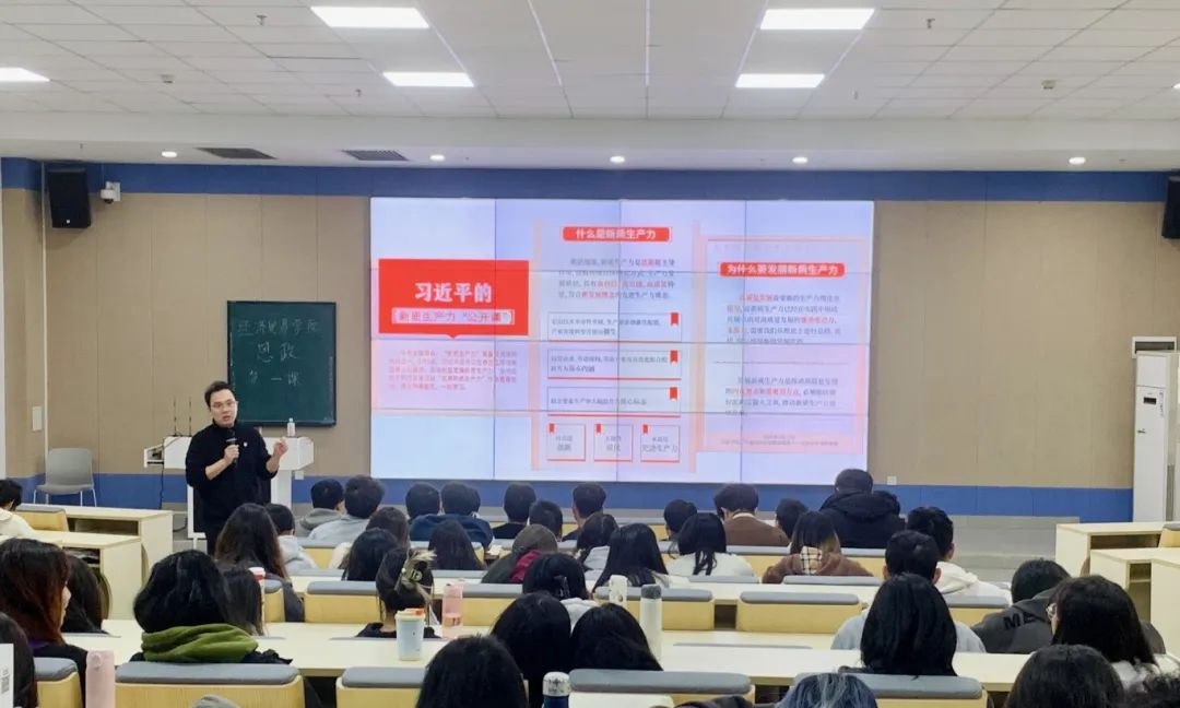 宋元跃副书记以“什么是新质生产力”为切入点进行授课,新质生产力具有高科技、高效能、高质量特征,它是由技术革命性突破、生产要素创新性配置、产业深度转型升级而催生,是高质量发展的强劲推动力、支撑力。他认为,高技能人才培养、数字化转型、人工智能等是社会发展大趋势。他鼓励同学们在学校学习阶段,不仅要努力提升科研学习能力,更要加强综合素质的训练,关注行业发展趋势,将自身的发展和国家、社会的需求紧密结合,起而行之,奋发有为。