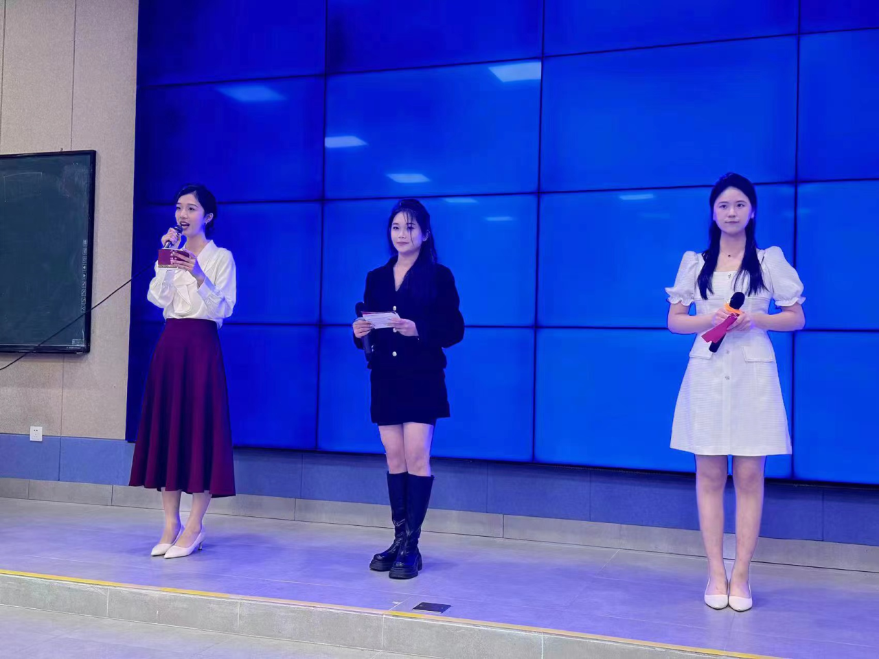 广州多多28传播与传媒学院口语传播系23级播音与主持艺术专业于3月4日晚在肇庆校区8号楼109课室举办主持人大赛,胜出者将成为“飞扬青春”经典诗文朗诵会主持人。比赛邀请口语传播系主任孙胜利老师和徐洁琼老师、夏梦君老师作为评委老师。