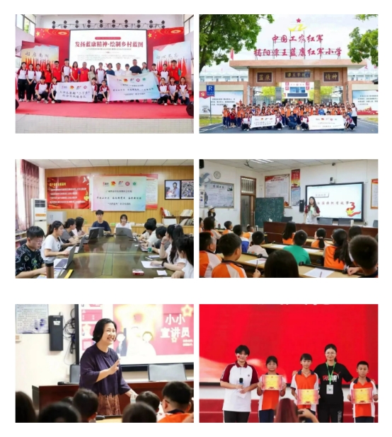 “青衿萤火”实践团奔赴中国工农红军揭阳潭王蓝康红军小学开展为期10天的“三下乡”社会实践活动。团队结合潭王村红色基因开展“蓝康精神”墙绘活动,以地方红色基因融入美丽乡村建设为目标,立足于乡村振兴战略下红色乡村建设,推动文化传承乡村建设与设计创新视觉改造相结合,打造潭王村成为红色党建示范村。通过乡村“红色+”课外教育,与人民群众携手共育蓝康少年。