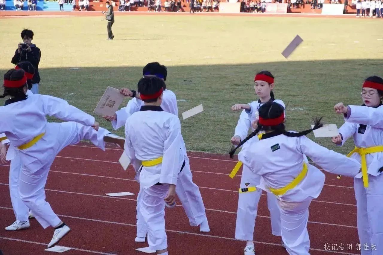 为充分展现华商学子昂扬向上的精神面貌,师生精心准备功夫扇、跆拳道、太极拳及瑜伽舞蹈等多个体育节目。一招一式,行云流水;一起一落,柔中寓刚,气韵生动,引得观众席连连叫好、拍手称赞。