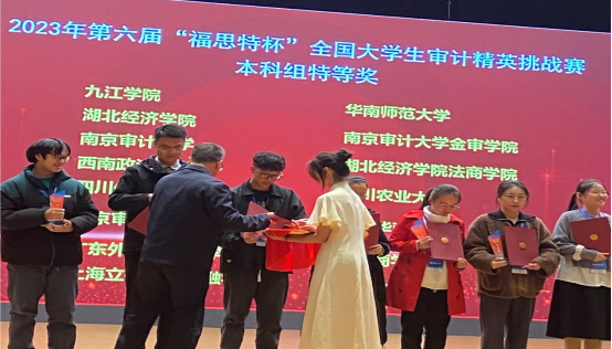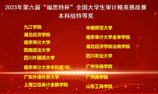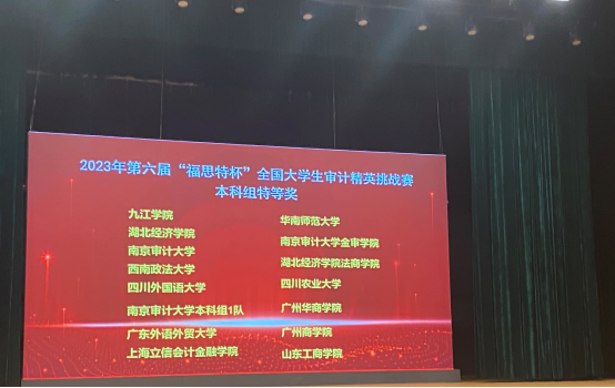 11月18日,第六届“福思特杯”全国大学生审计精英挑战赛总决赛在南京审计大学盛大落幕,我校代表队从2314支队伍中冲进全国总决赛,又在决赛中斩获“特等奖”荣誉,让广州多多28的校徽与全国知名院校同台登上了决赛幕墙,为我校争光。
