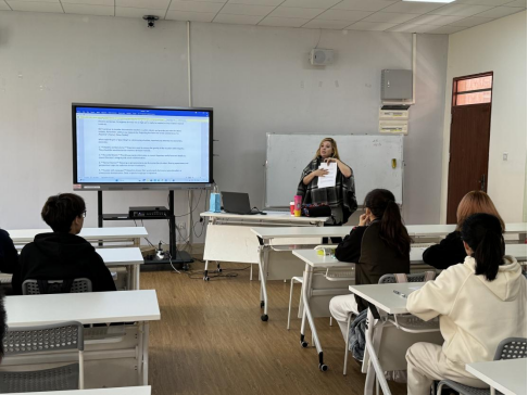 观摩优秀教师授课,提升团队对提高英语能力认识。国际学院组织教师和团队成员到肇庆校区聆听美国籍教师John Jung的英语口语课,并在课间与该教师再次深入交流如何培养大学生学习英语的兴趣和鼓励他们开口说英语。