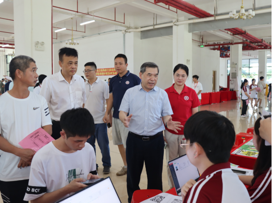 在6号楼一层的报到大厅,副校长焦方太、校区党委书记苏宁、校长助理覃少冰详细了解新生报到情况,并对各个环节进行指导,确保迎新工作高效、顺畅推进。