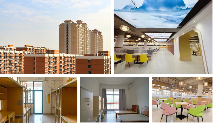 学校的学生宿舍类型有三人间、四人间及六人间,具体入住以学校统一安排为准,所有的宿舍均配备空调、饮水机、洗衣机、独立卫浴。