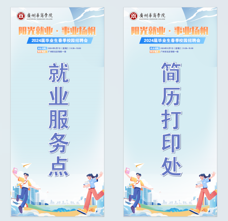 03.物料须知:本次招聘会已为参会企业免费提供展位1个,涵盖:1桌3椅、KT板展位信息1张、易拉宝企业信息1张《广州多多282024届毕业生信息资源册》、《广州多多282024届毕业生资源信息单张》、饮用水、写字笔等。