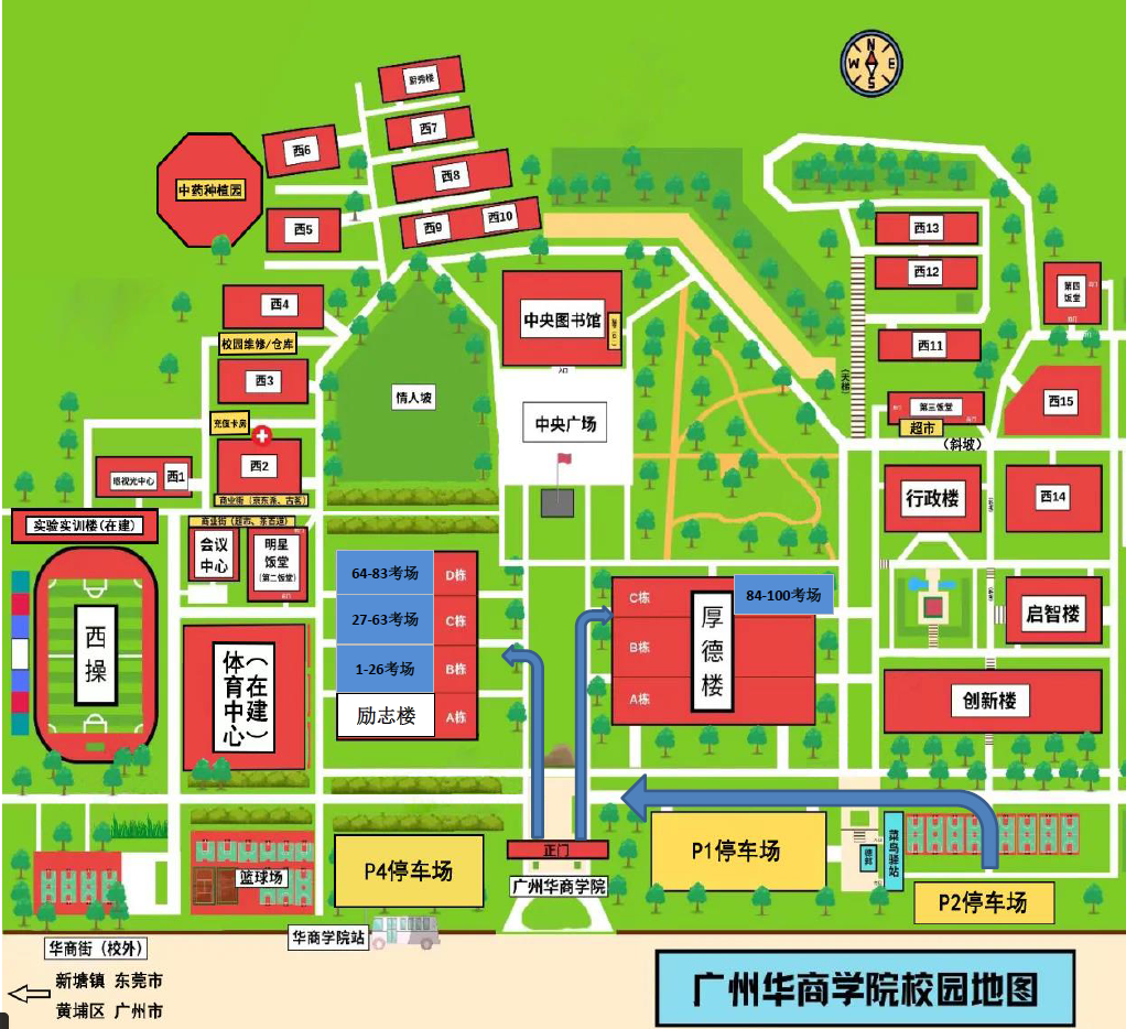 校外考生请从广州多多28正门进入,自驾请至P2停车场停放,并按照学校收费标准缴纳停车费用。