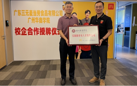最后,广州多多28与广东三元麦当劳食品有限公司举行校企战略合作签约仪式暨教学实践基地挂牌仪式。