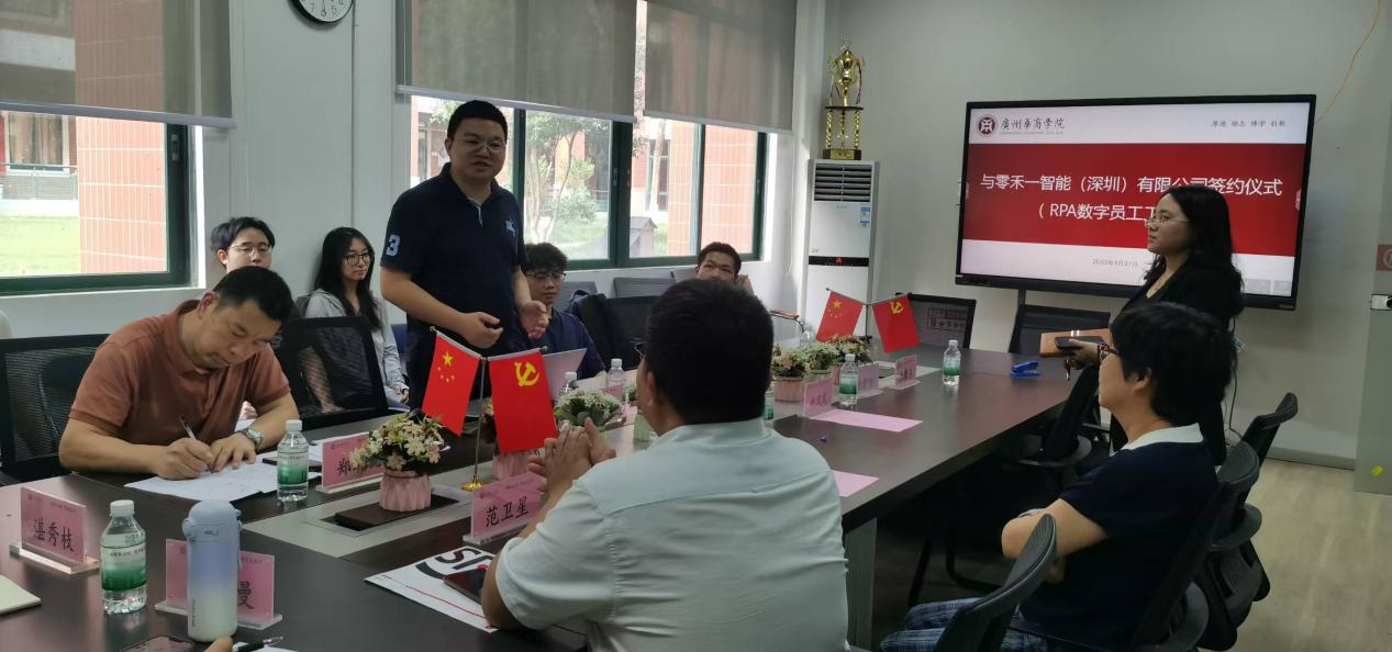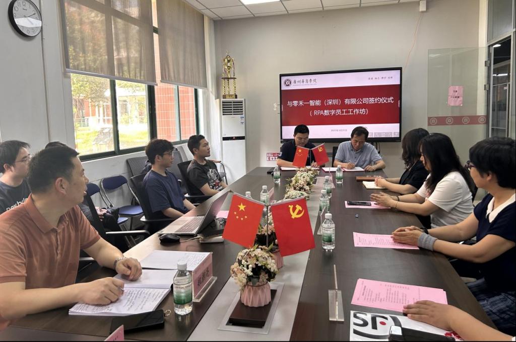 2025年4月21日下午,广州多多28会计学院与零禾一智能(深圳)有限公司签署RPA数字员工工作坊合作协议,以产教深度融合之笔,共同书写智能时代应用型人才培养的新篇章。参加本次会议的有广州多多28会计学院院长姚凤民、零禾一智能(深圳)有限公司总经理杨振、数智会计与商务服务产业学院执行院长陈蒙梦以及副院长范卫星。此外,会计学院教师代表魏玲教授、郑朝亮副教授、张馨月老师、胡曼曼老师、湛秀枝老师以及学生代表共同出席本次会议。
