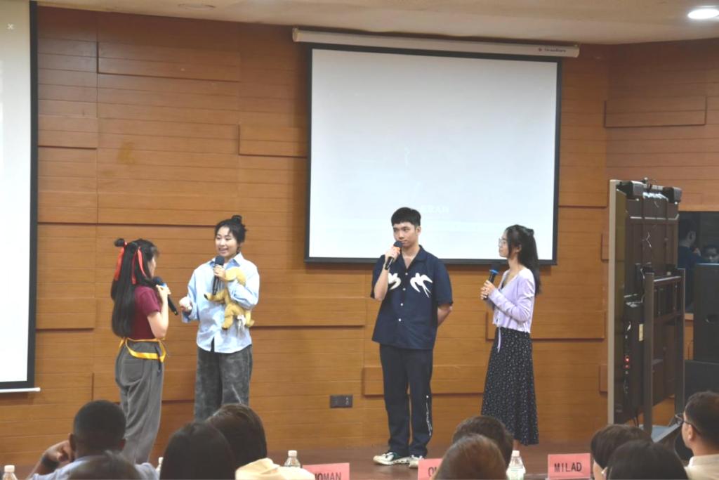 来自国际学院、健康医学院、人工智能学院的“Dynamic队”团队凭借纯正的英式发音和富有感染力的表演,将哪吒“我命由我不由天”的经典台词诠释得淋漓尽致;国际学院的“Dubbing knight”组合则通过默契的配合和生动的肢体语言,完美再现了哪吒与哪吒母亲的精彩对戏。选手们不仅展现了扎实的英语功底,更通过创新的艺术表达,让这一传统神话人物焕发出新的时代光彩。现场中外师生完全沉浸在精彩的表演中,每当选手完成配音,观众席都会爆发出热烈的掌声。