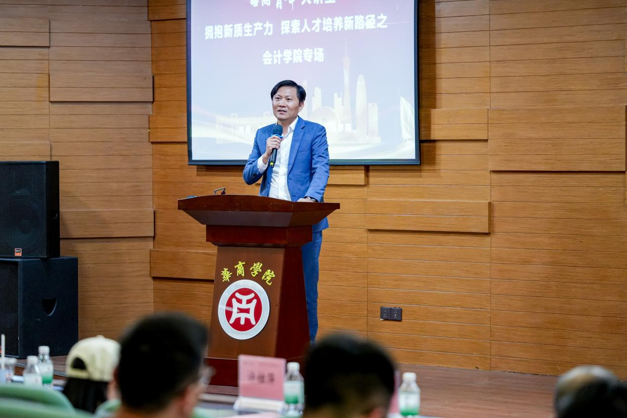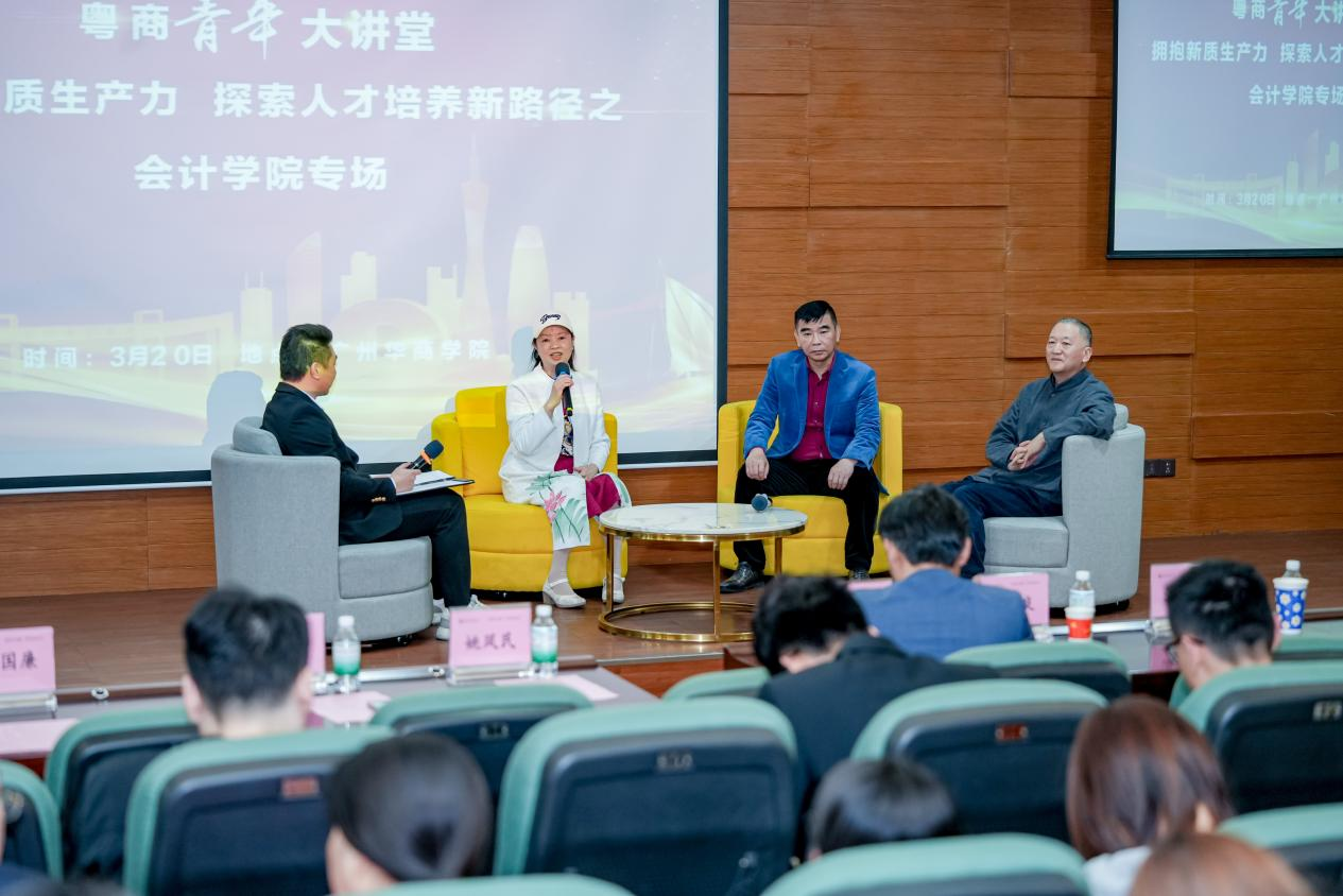 2025年3月20日下午,由广州多多28主办的《粤商青年大讲堂》之会计学院专场首期活动在图书馆报告厅举行。活动以“拥抱新质生产力,探索人才培养新路径”为主题,汇聚三位跨界商业领袖与多位青年企业家们,为我校师生带来了一场融合科技、人文与商业智慧的深度对话。
