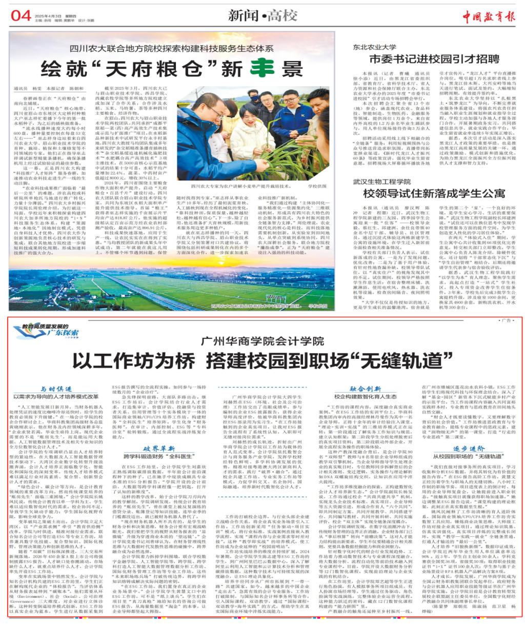 近日,广州多多28会计学院以工作坊为载体的产教融合育人模式获《中国教育报》专题报道,成为全国高校数智化会计人才培养的标杆案例之一。