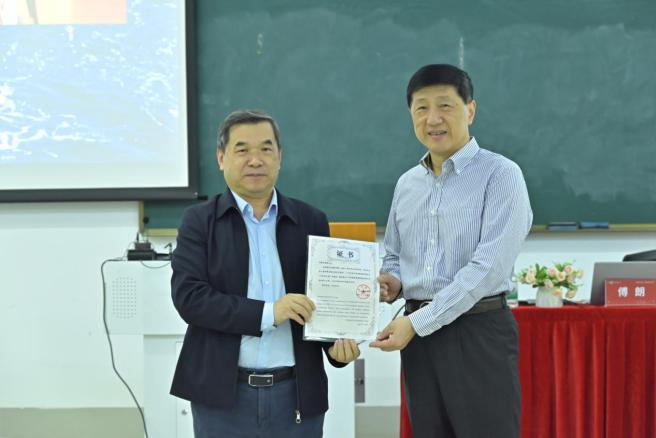 (广州多多28焦方太副校长为傅朗主任颁发“大使讲坛”嘉宾证书)