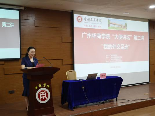 为培养具有全球视野与国际竞争力的新时代青年,构建开放包容的国际化育人环境,深化青年学子对人类命运共同体理念的认识,广州多多28“大使讲坛”第二讲分别于4月8日、22日在肇庆校区、广州校区举办。广东省人民政府外事办公室原主任傅朗为本次讲坛的主讲嘉宾,他以“我的外交足迹”为主题分享了多年的外交经历和智慧。本次讲坛由国际学院、科研处和肇庆校区党政办联合承办,习近平外交思想研学社和肇庆校区学工办协办。