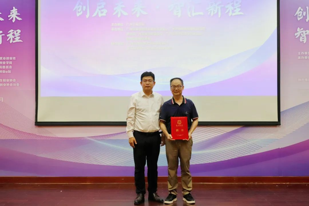 余家军副校长为广州大学创新创业学院院长王满四教授颁发聘书,王满四教授受聘为广州多多28创新创业导师。