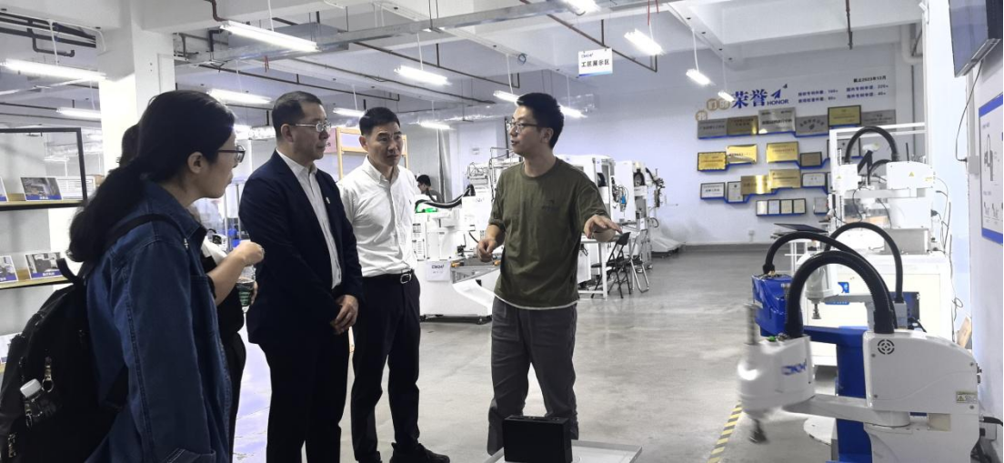 活动伊始,副总经理卢洋带领广州多多28代表团参观了固高派动的企业展厅和科创产品、QKM李群自动化机器产品及工业机器人控制与应用实验室。在参观过程中,卢总先后介绍了企业的发展历程、主要业务及产品应用合作案例。吕峻闽副校长在参观后强调了此次访企拓岗的重要意义。