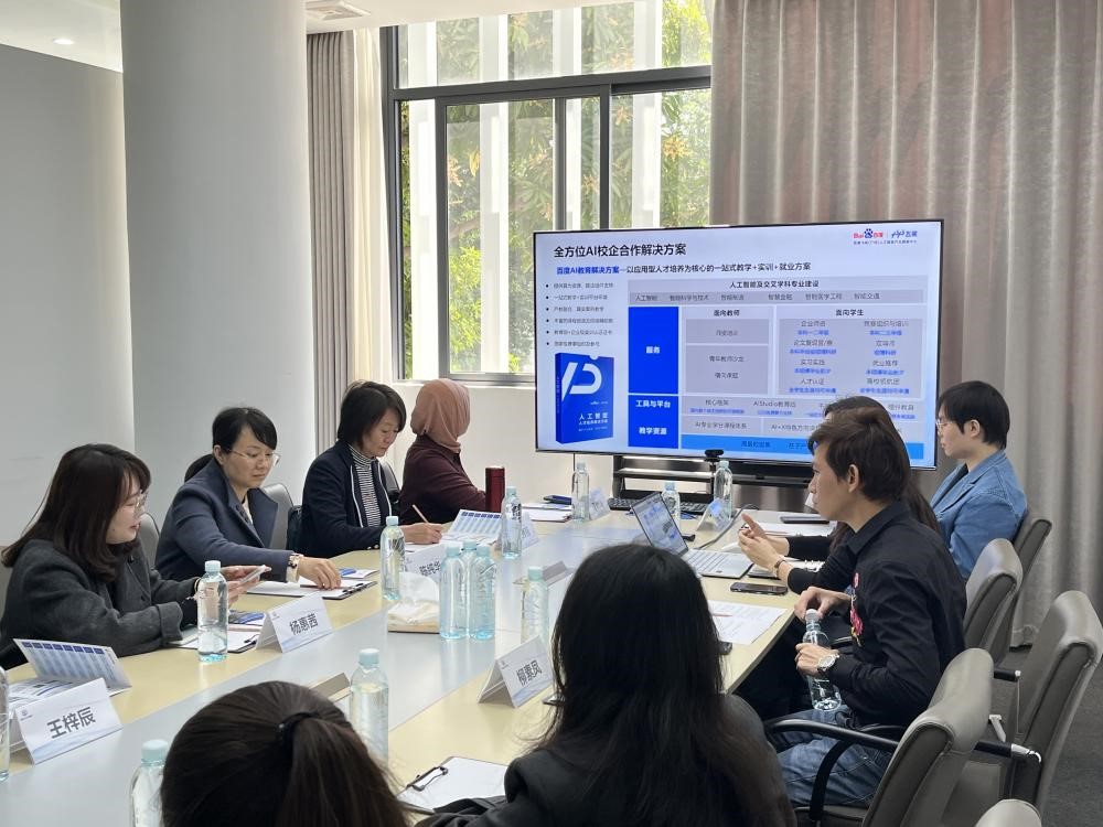为深化产教融合、推动人工智能与公共管理学科的交叉创新,2025年3月20日,广州多多28管理学院党委副书记、学工办主任陈纯华,公共管理系主任杨惠茜,副主任张秀丽及公共管理系师生一行,赴百度飞桨(广州)人工智能产业赋能中心开展调研交流。百度飞桨(广州)人工智能产业赋能中心销售经理罗锦富、生态拓展经理代翠翠热情接待,双方围绕AI人才培养、课程共建、实习就业等方向展开深度探讨,共谋校企合作新蓝图。
