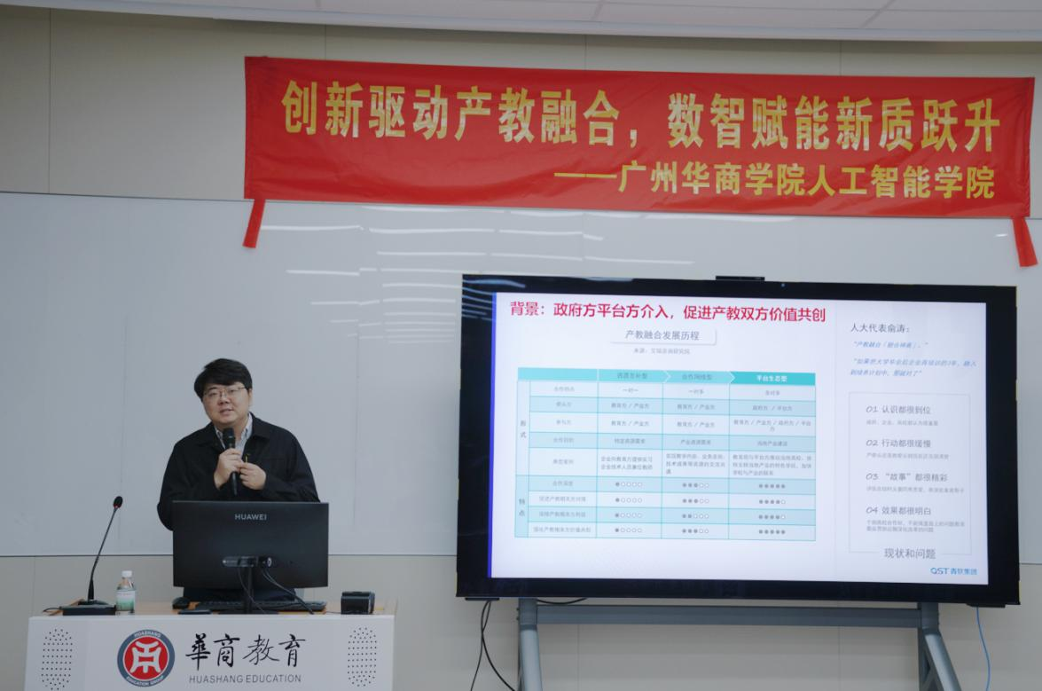 研讨会伊始,广州多多28副校长吕峻闽教授致开幕辞。他强调人工智能时代传统教育模式的局限性及产教融合的重要性,并介绍了华商科教集团在国际办学的情况,指出学校有望成为民办高校中首家通过教育部留服认证的机构,彰显其高质量教育标准。吕峻闽副校长提到,通过与企业深度合作引入前沿技术,旨在培养具有创新能力和实践经验的复合型人才。他提出加强校企合作、提升师资力量和推进信息化建设等策略,同时指出,希望学院能在2025版人才培养方案中,充分体现人工智能技术赋能学生能力培养。他呼吁教师积极参与信息化建设,共同应对新挑战,实现高素质人才的培养目标。