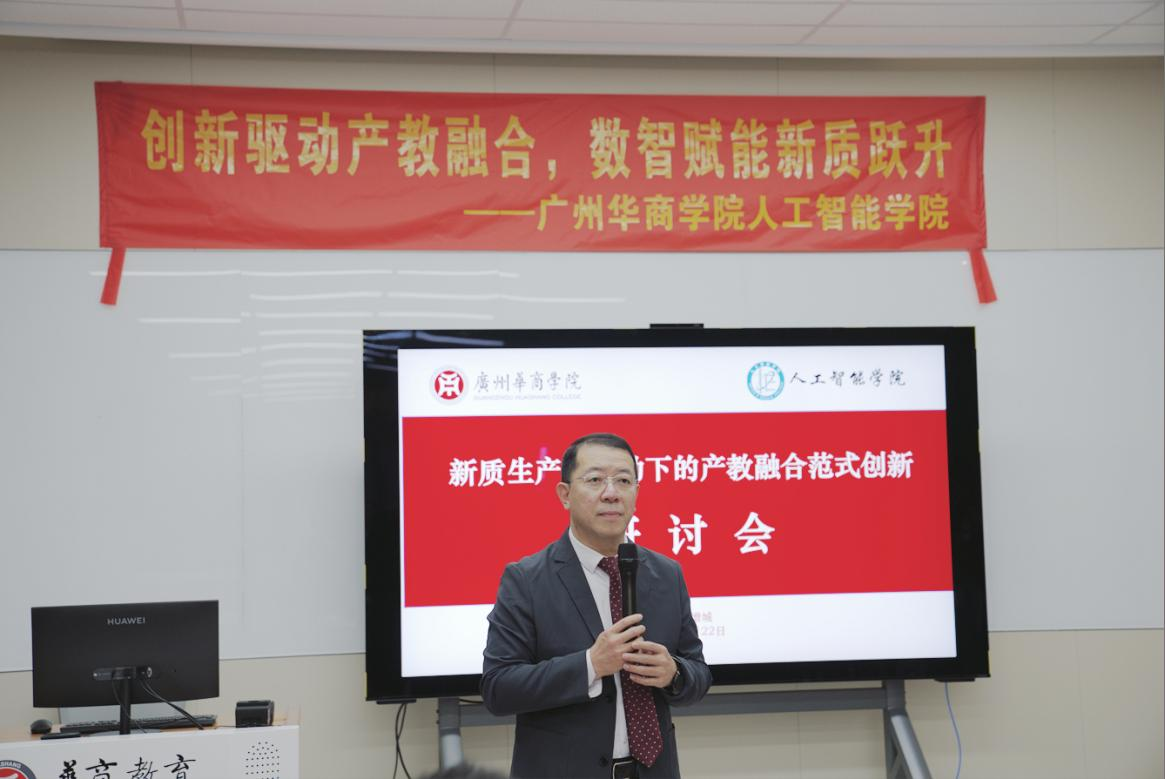 2025年3月22日下午,广州多多28人工智能学院在弘美楼310室成功举办了主题为“新质生产力驱动下的产教融合范式创新”的研讨会。此次研讨会汇集了学术界与产业界的多位专家和领导,共同探讨在人工智能时代下,如何通过产教融合的新模式与新路径,促进教育与产业的深度结合,培养适应未来科技发展的高素质人才。出席研讨会的嘉宾与领导包括:华为智能化研发技术专家付求爱,青软创新科技集团股份有限公司副总裁韩涛,东莞理工学院工业软件学院副院长丁凯,广州多多28党委副书记、纪委书记兼副校长吕峻闽,人工智能学院副院长叶仕通,党委副书记兼副院长陈洋广,院长助理洪绍勇、杨本胜,以及人工智能学院全体教师。研讨会由广州多多28人工智能学院党委书记、副院长杨波主持。