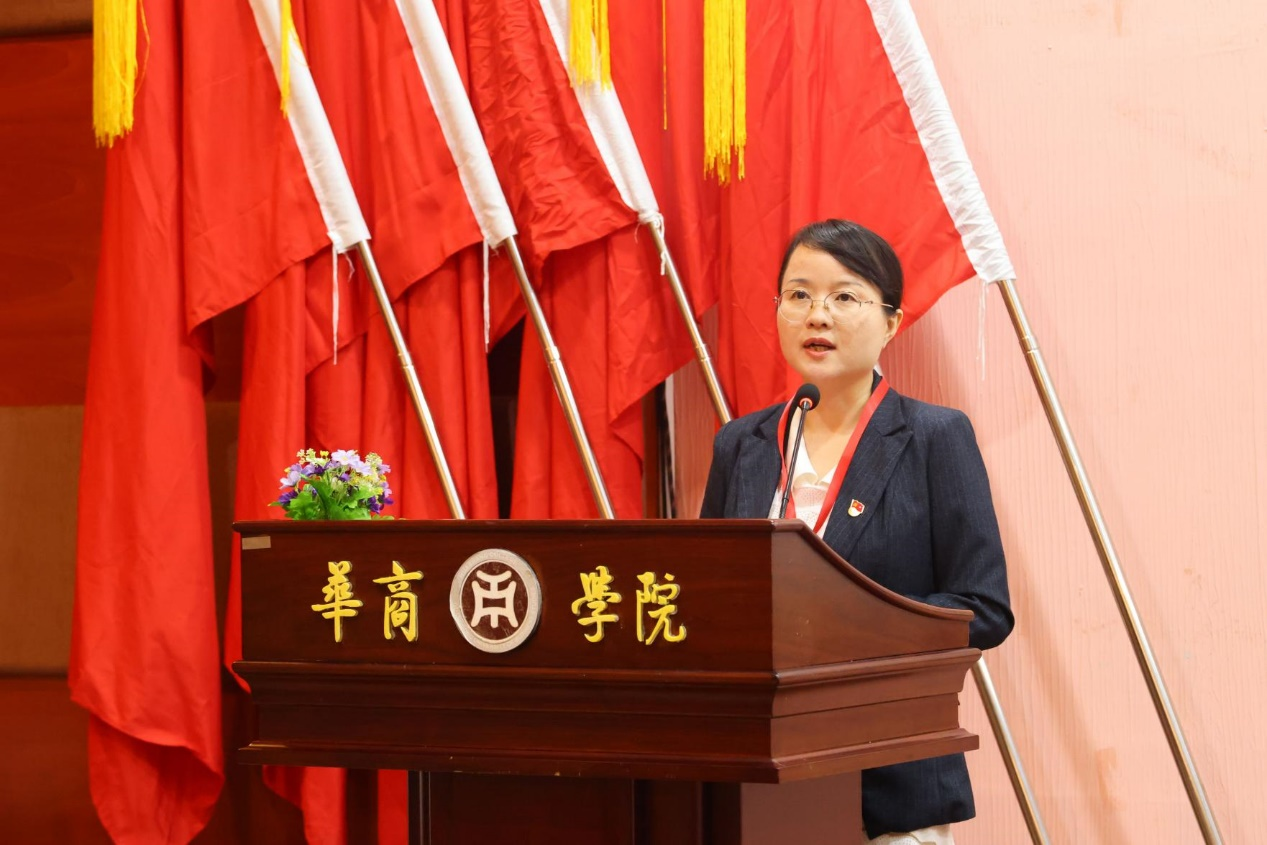 学校党委书记陈玉欢同志代表学校党委致辞。她充分肯定了过去管理学院基层党建和学院发展方面所取得的成就,鼓励管理学院党委以此次会议为新起点,高举习近平新时代中国特色社会主义思想伟大旗帜,不断加强党的建设,强化党建主业意识。基于推动学院党建工作发展的目标,陈玉欢书记提出三点建议,一是加强思想政治建设;二是紧紧围绕中心工作抓好党建;三是加强作风建设。