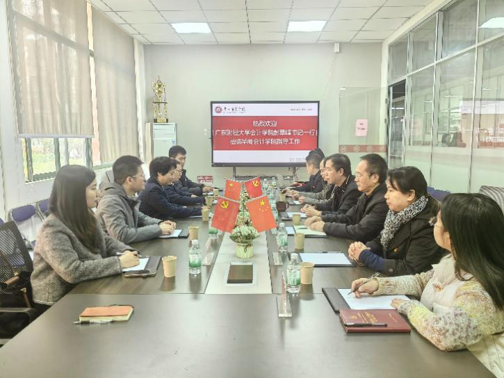 2024年12月18日,广东财经大学会计学院党委书记彭翠峰、党委副书记刘春寒、会计学院/智能财会管理学院副院长杨志强一行5人莅临华商会计学院交流座谈共建工作。会计学院院长姚凤民、学院党委书记刘善球等学院班子成员参加座谈。座谈会由姚凤民院长主持。