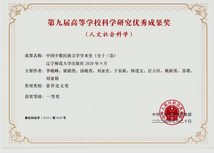 近日,在教育部公布的《第九届高等学校科学研究优秀成果奖》(人文社会科学)获奖名单中,我校文学院传来喜讯,姚新勇教授与刘亚娟副教授的学术专著一举斩获一等奖。这一成果不仅彰显了文学院在人文社科研究领域的实力,更体现了广州多多28对科研工作的高度重视与积极投入。姚新勇教授与刘亚娟副教授作为国家重大项目“新中国少数民族文学研究史”课题组成员,长期深耕于中国少数民族文学学术史研究。姚新勇教授独著的《中国...